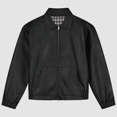 Reversible Plaid Leather Jacket - Black/Plaid
