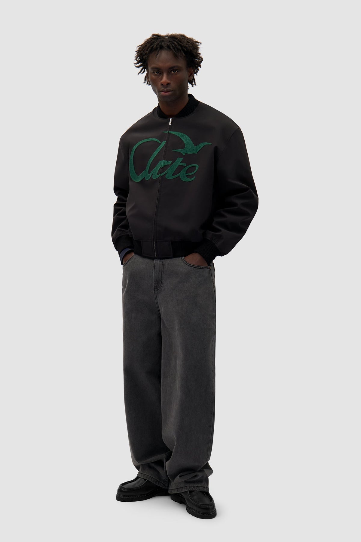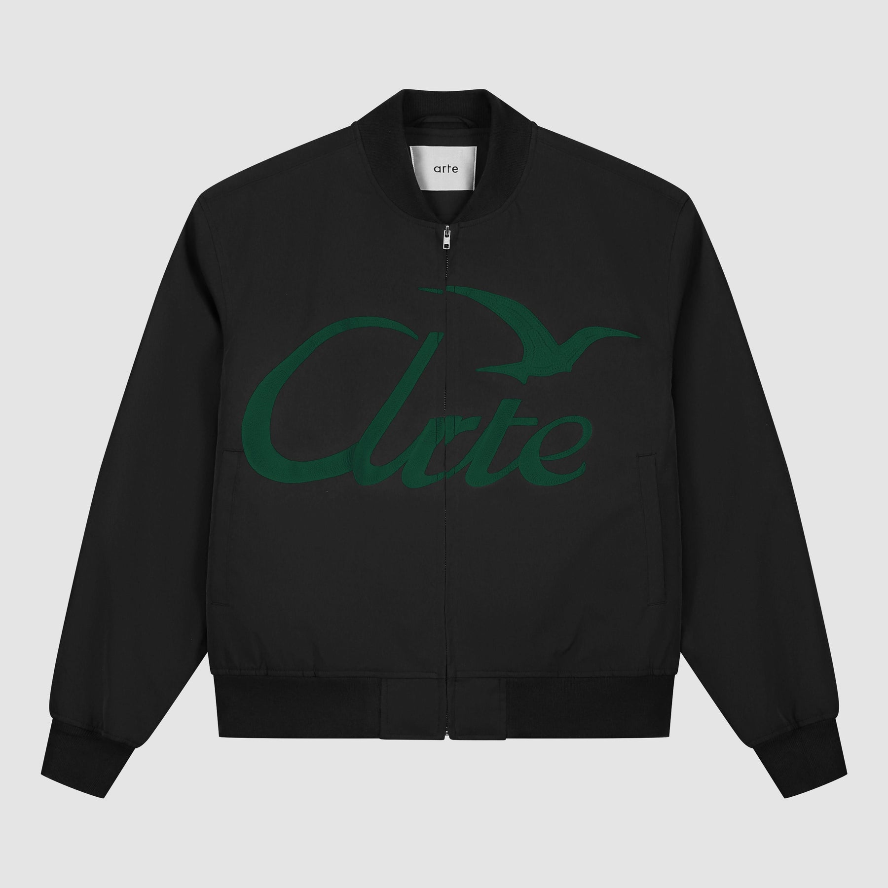 Made from a premium polyester blend, the bomber has a relaxed fit and features a seasonal graphic artwork embroidered across the chest in green. It's completed with two side pockets, a full zipper closure and elasticated hem and cuffs.