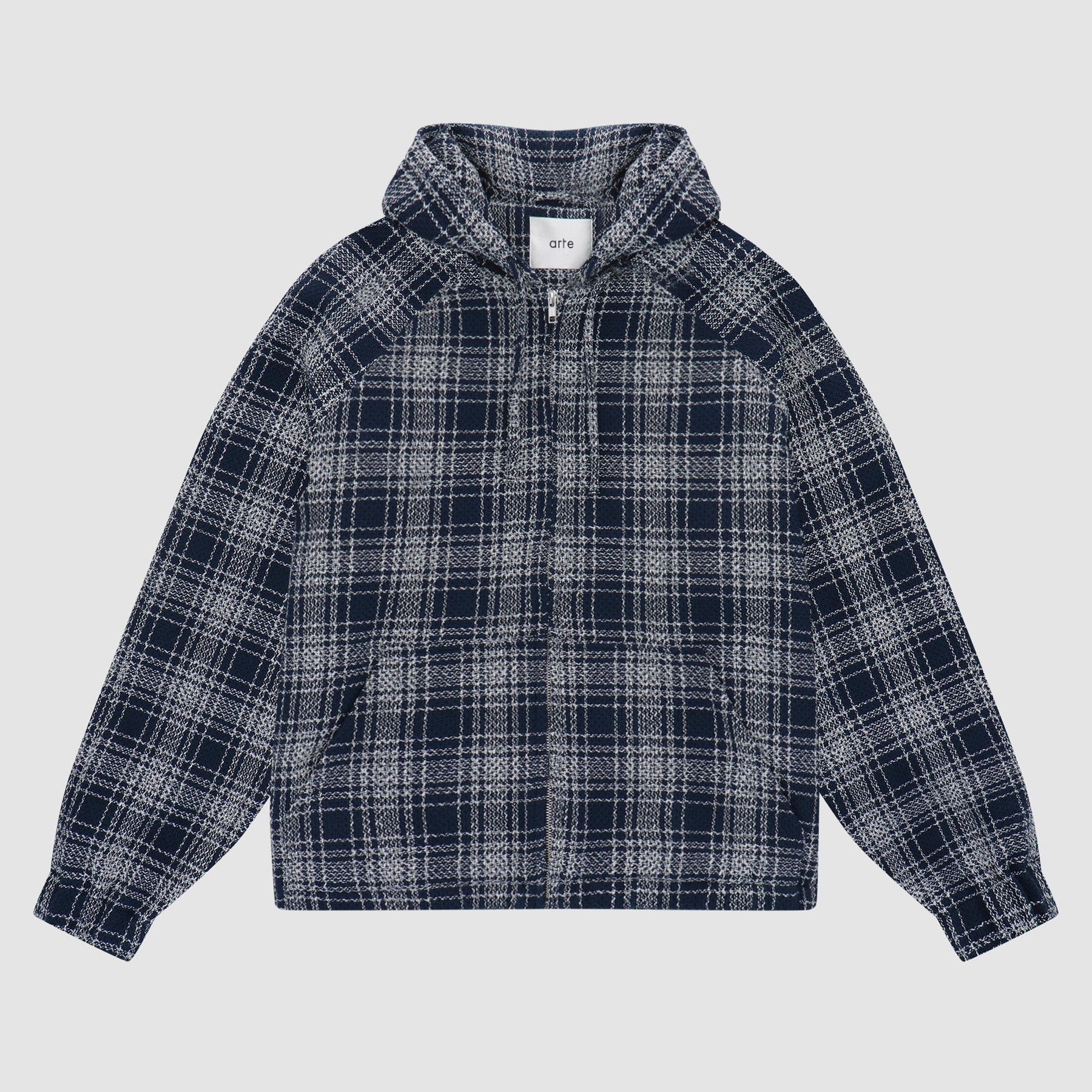 Designed in plaid, a seasonal texture of the Spring/Summer 2025 collection, the jacket channels the theme of the collection. The jacket has an adjustable hood, full zipper closure and two large side pockets. It's completed with branded woven label on the left lower side.
