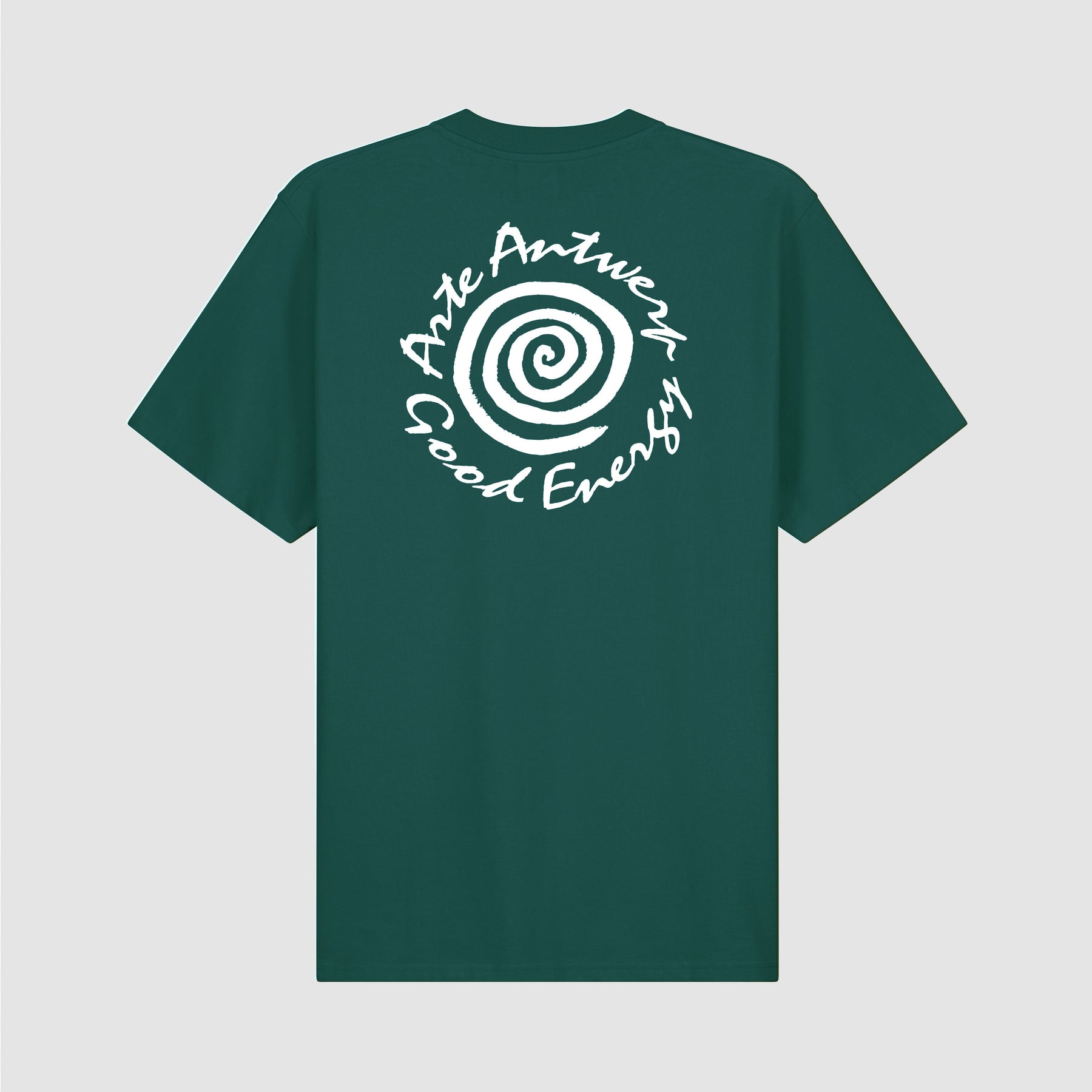 The T-shirt features an artwork screen-printed in white across the back that channels the theme of the collection. Made from premium heavyweight cotton, the dark green T-shirt is soft to the touch with a slightly higher neckline and a relaxed fit. The Arte logo can be found embroidered in white on the left side of the chest.