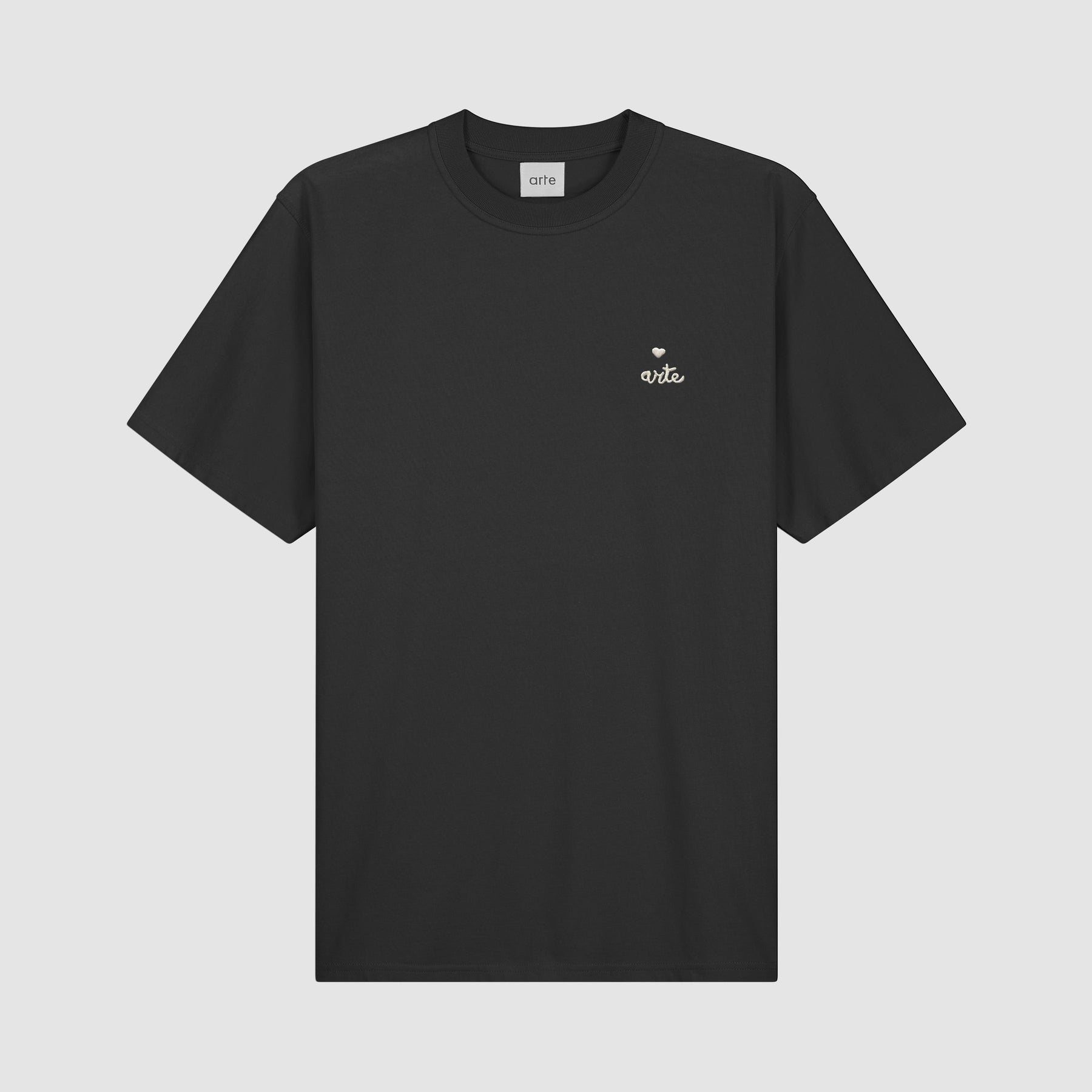 The piece features this season's take on the signature Arte heart logo embroidered in white on the left of the chest. Made from premium heavyweight cotton, the black T-shirt has a relaxed fit and a slightly higher neckline.
