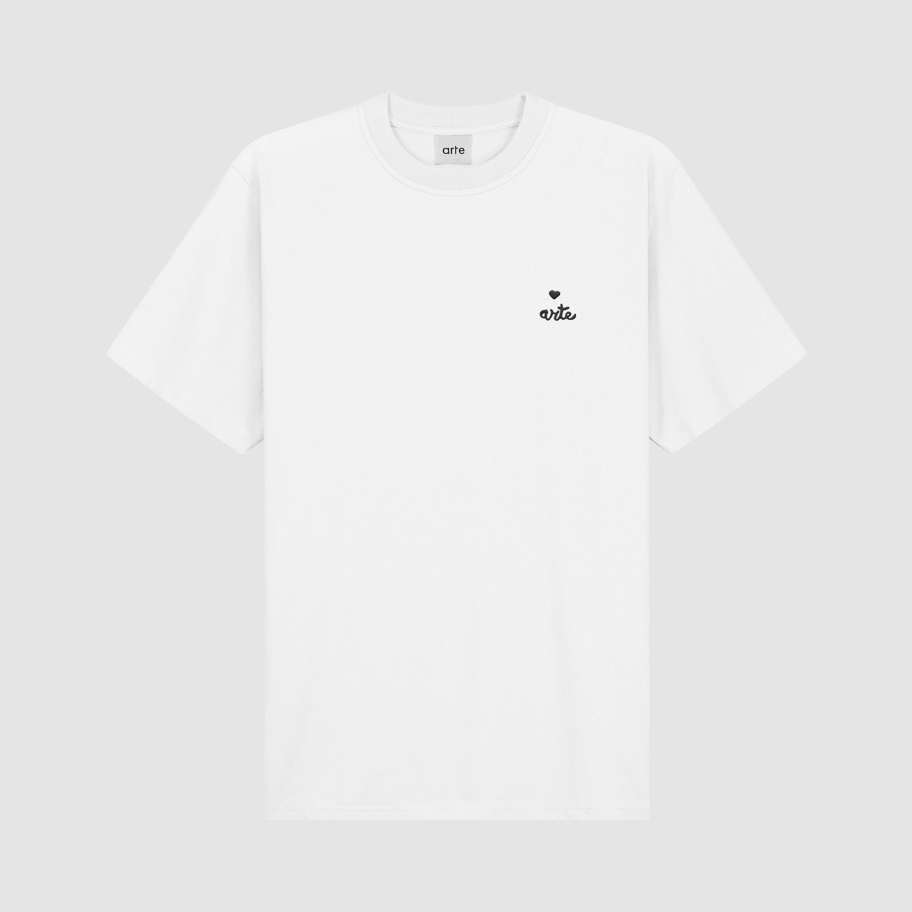 The piece features this season's take on the signature Arte heart logo embroidered in black on the left of the chest. Made from premium heavyweight cotton, the white T-shirt has a relaxed fit and a slightly higher neckline.