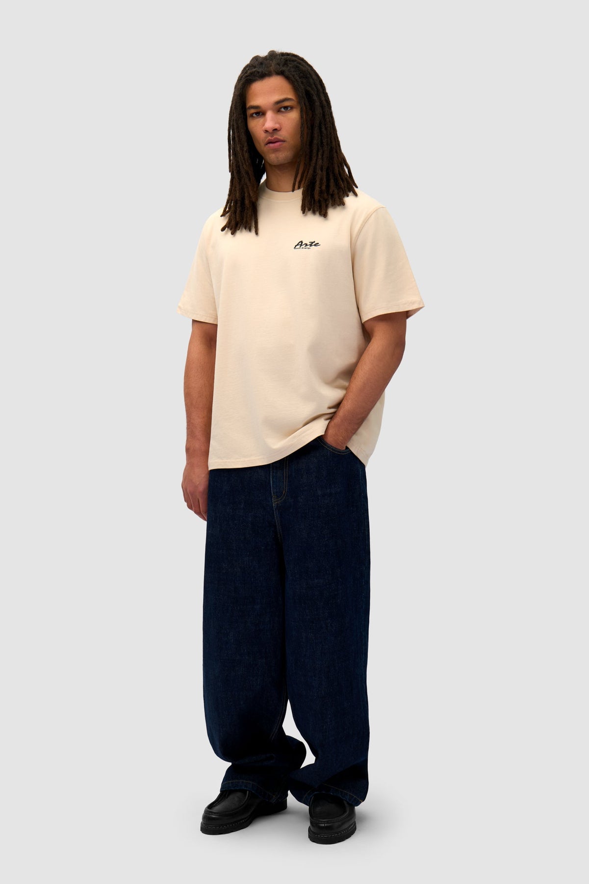 The T-shirt features a graphic screen-printed across the back that channels the theme of the collection. Made from premium heavyweight cotton, the cream coloured T-shirt is soft to the touch with a slightly higher neckline and a relaxed fit.