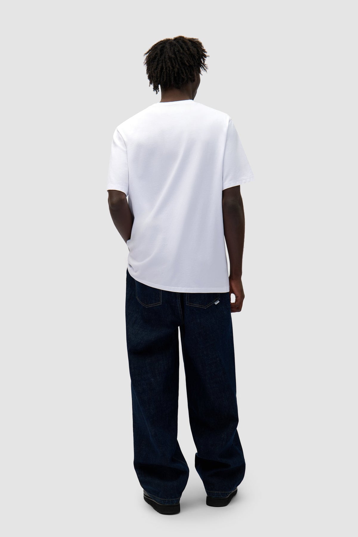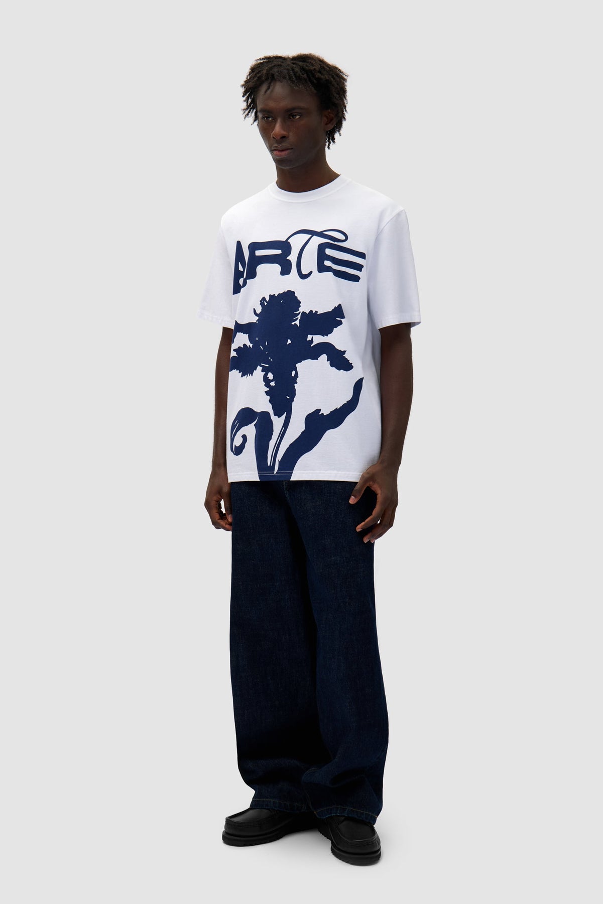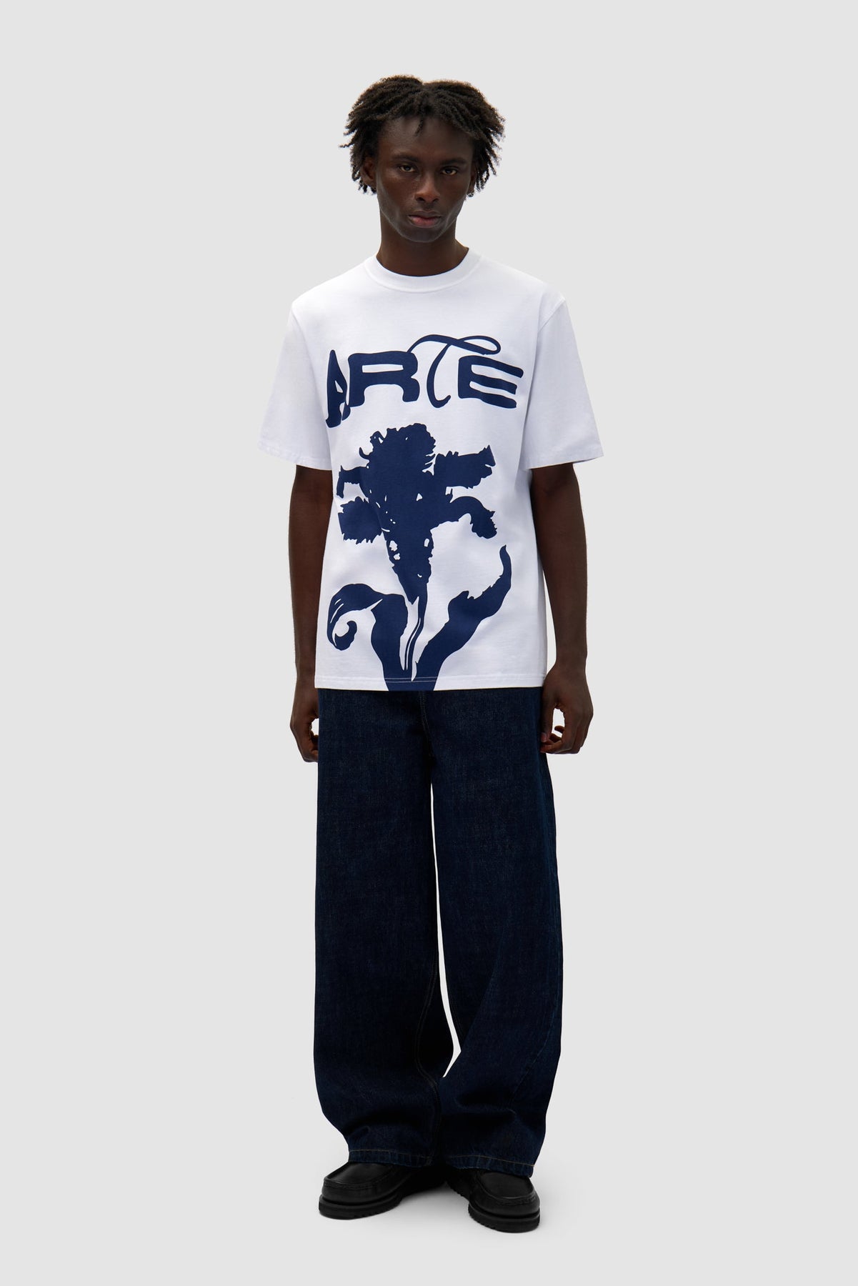 The T-shirt features a dark blue artwork screen-printed on the chest that channels the theme of the collection. Made from premium heavyweight cotton, the white T-shirt is soft to the touch with a slightly higher neckline and a relaxed fit.