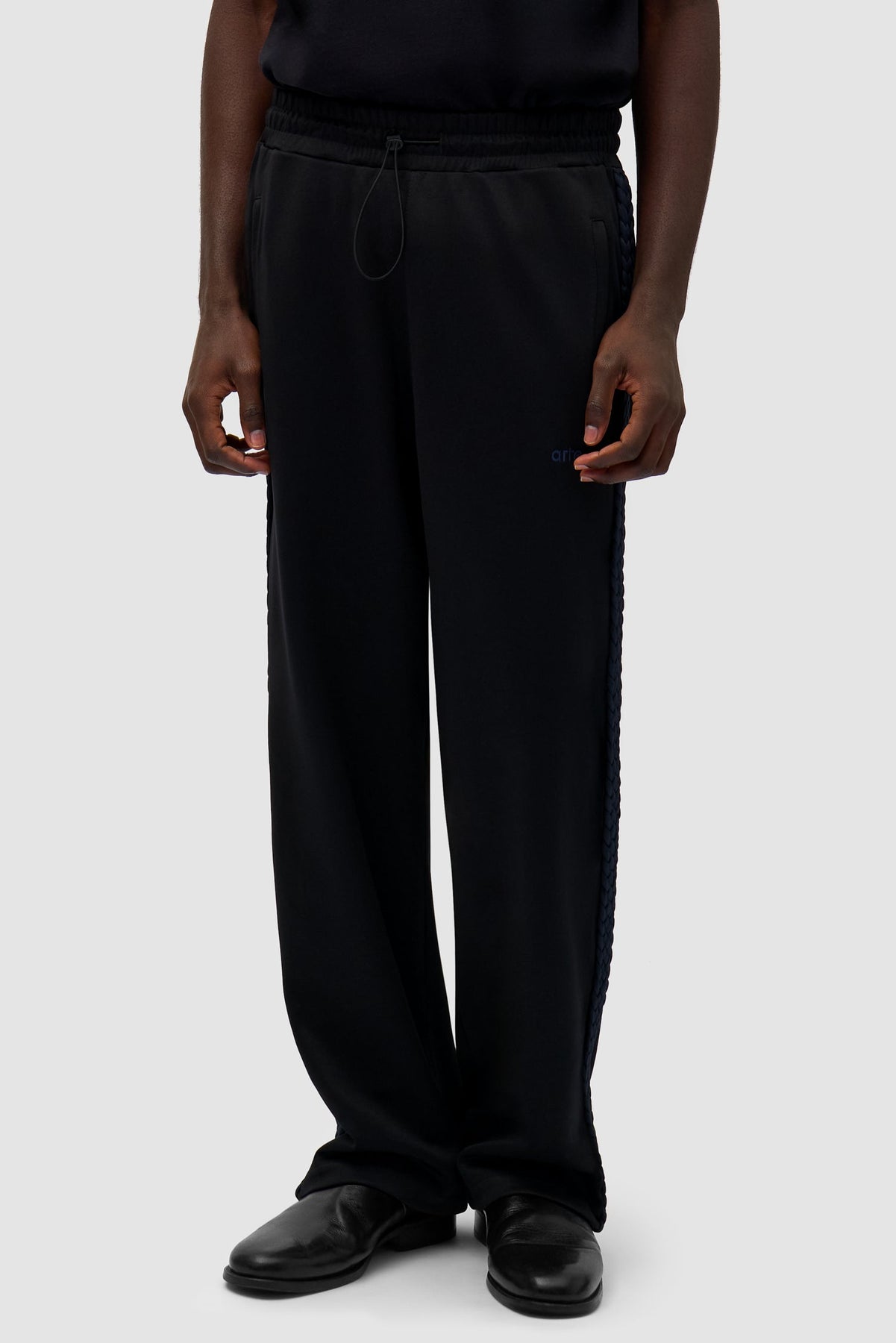 Crafted from a soft cotton and polyester blend, the pants offer both function and elevated style. It has two side pockets, an elasticated waistband and two back pockets. The pants feature a navy logo embroidered on the left upper leg and braided trims in navy on each side of the legs. Complete the look with the matching track jacket.
