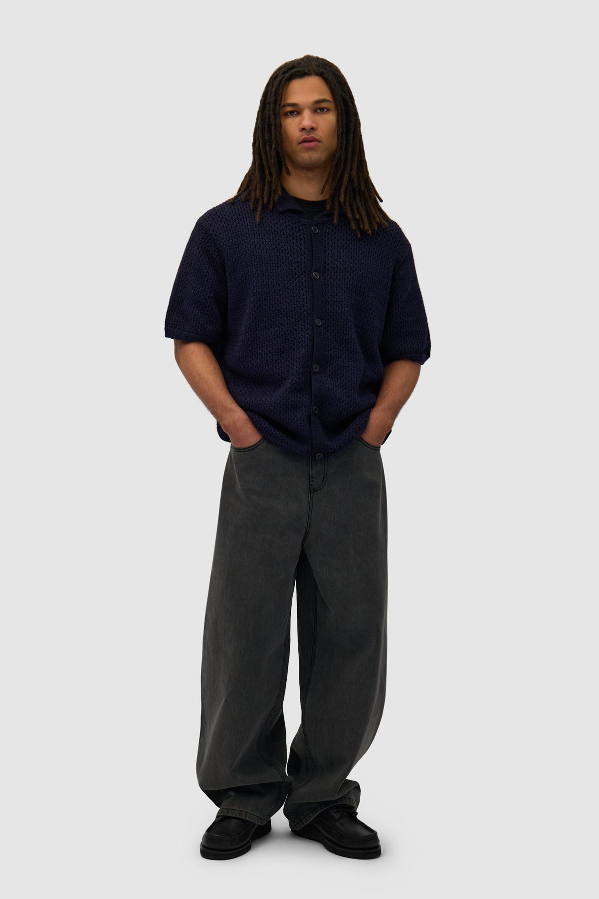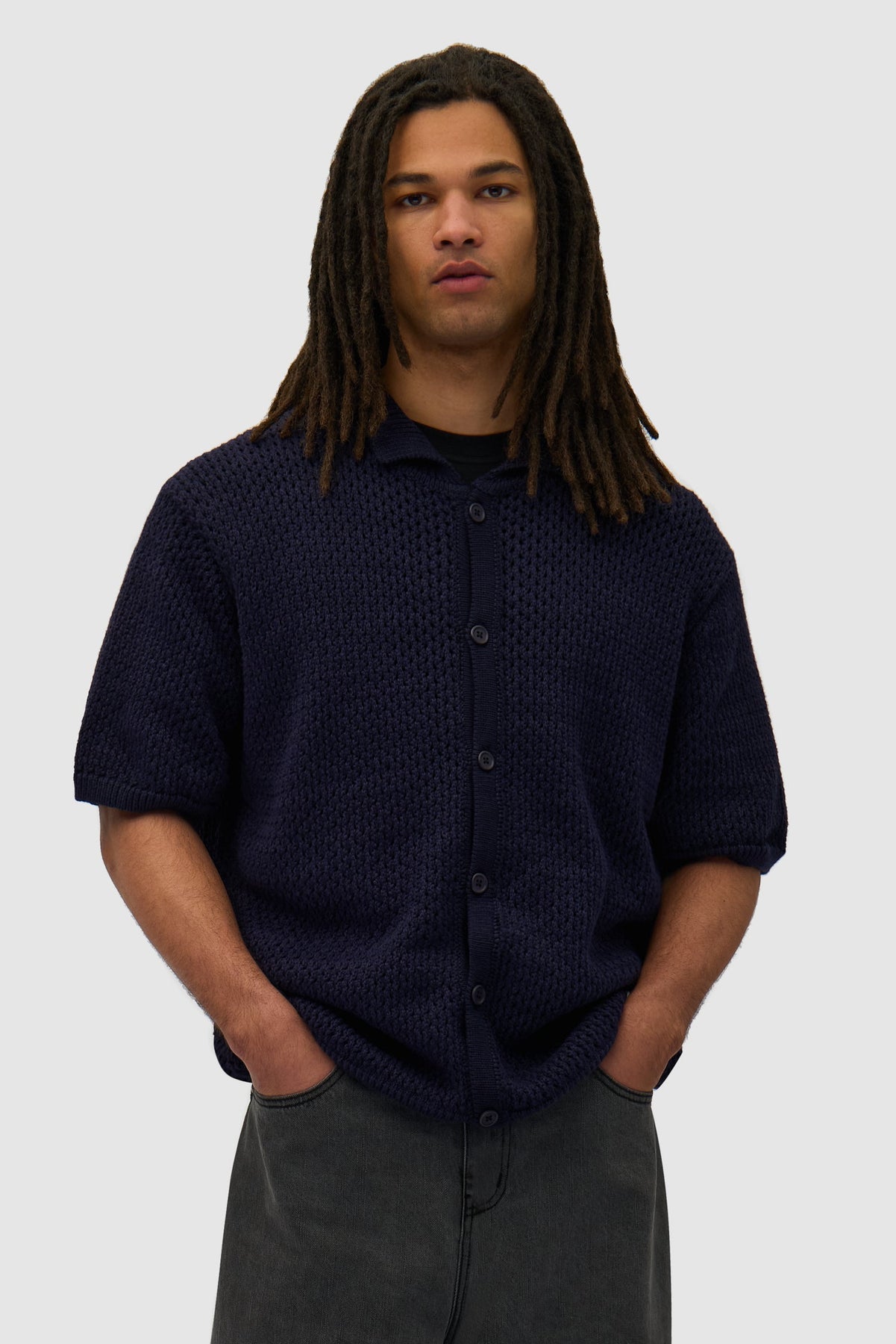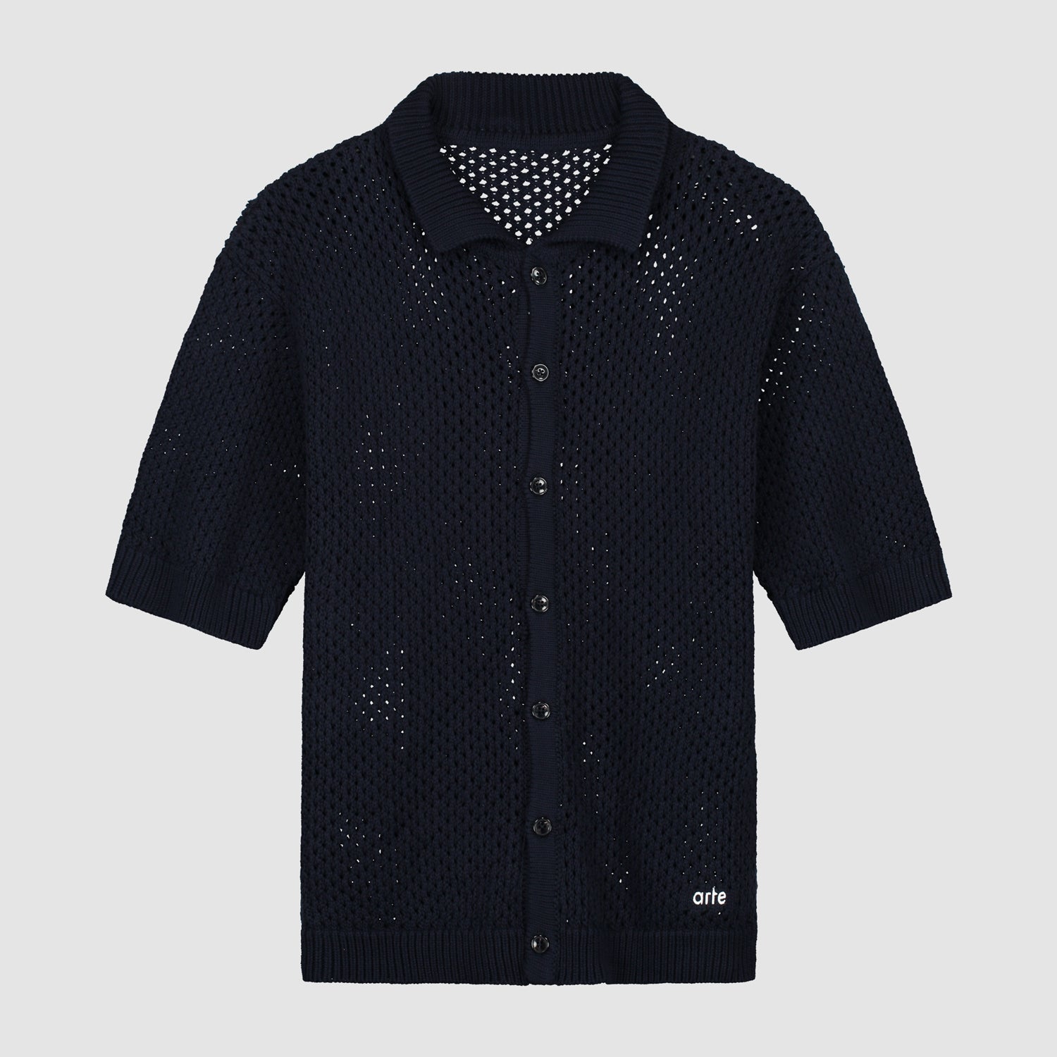 Crafted from premium cotton, the shirt is knitted with a soft, breathable open structure. It comes in a relaxed fit, offering both refined style and comfort. It's completed with a woven branded label in black and white at bottom of the shirt on the left.